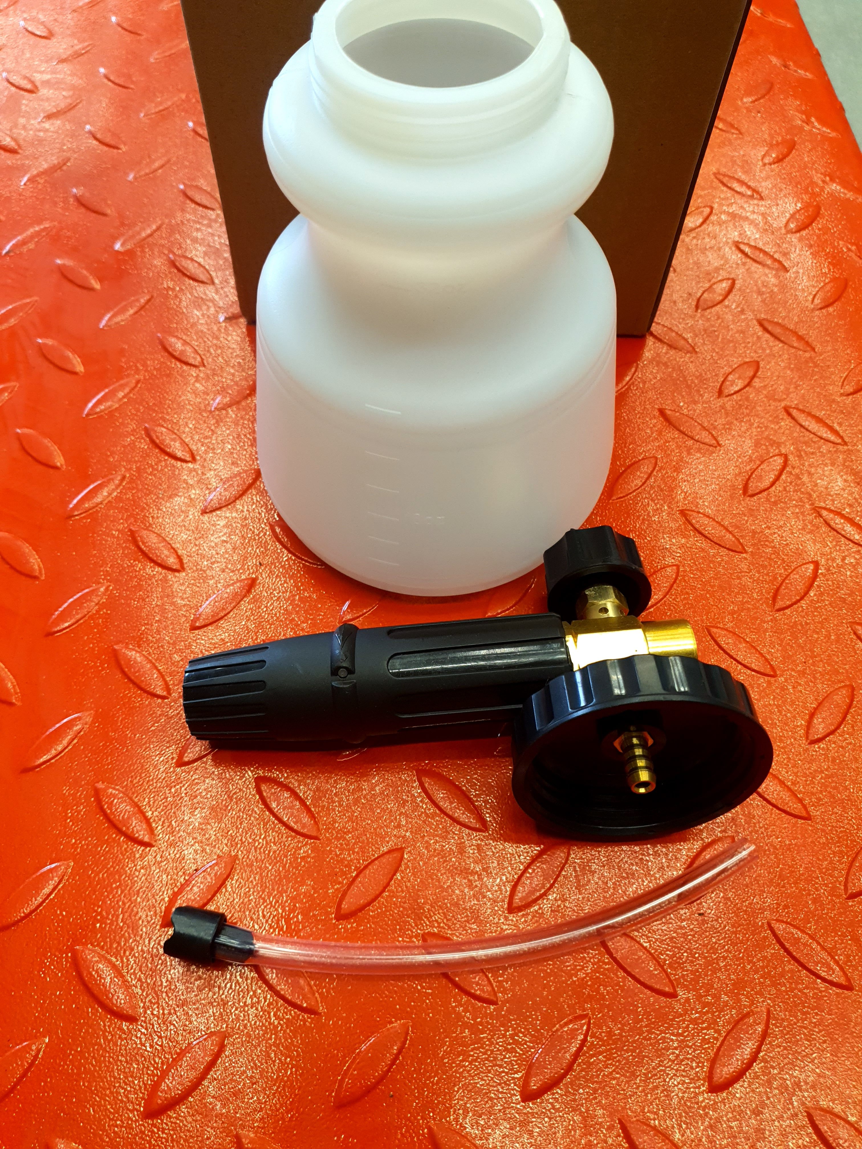 Le Foam Lance est un appareil à brancher sur votre nettoyeur haute pression afin d’effectuer un pré-lavage. En utilisant le Foam Lance avec un shampoing adéquat vous obtiendrez une mousse bien dense qui adhérera à votre carrosserie pour décoller les contaminants. Le lavage futur en sera bien facilité.
