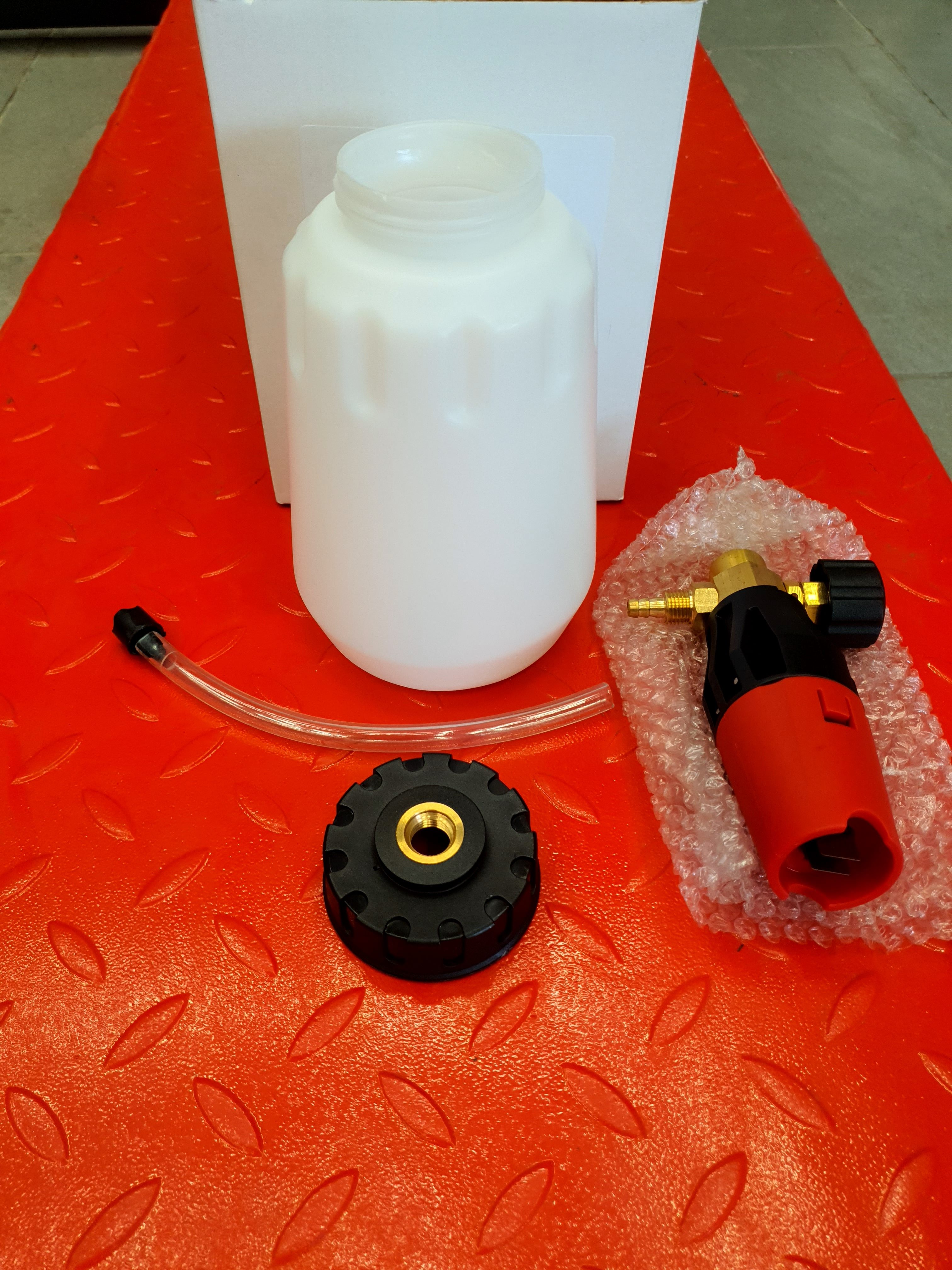 Le Foam-Lance est un appareil à brancher sur votre nettoyeur haute pression afin d’effectuer un pré-lavage. En utilisant le Foam Lance avec un shampoing adéquat vous obtiendrez une mousse bien dense qui adhérera à votre carrosserie pour décoller les contaminants. Le lavage futur en sera bien facilité.