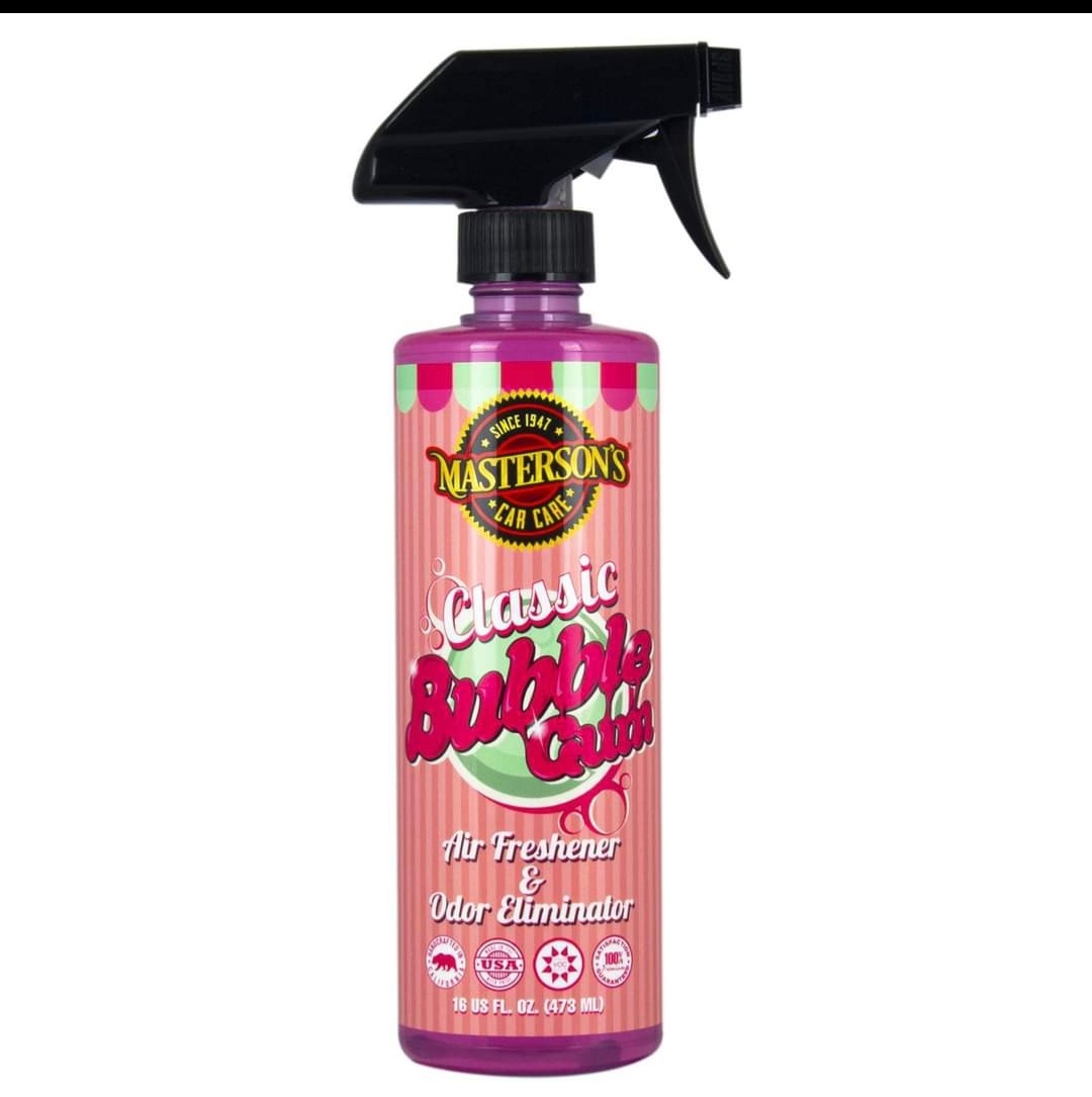 Parfum d’ambiance Classic Bubble Gum de Masterson’s offre un délicieux parfum fruité! Le véritable parfum de bubble gum rappelle des souvenirs d’enfance. Le doux parfum du chewing-gum élimine les odeurs et rafraîchit l’air avec seulement quelques sprays. Vivez des flashbacks saisissants de vos plus grands moments d’enfance avec notre assainisseur d’air et éliminateur d’odeurs classique Bubble Gum. La technologie avancée d’élimination des odeurs élimine les odeurs désagréables de votre voiture
