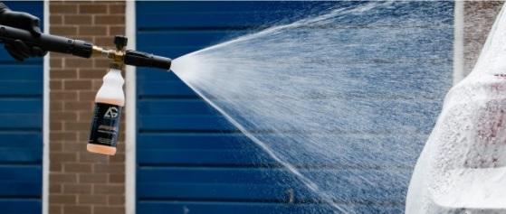 Lavage à la foam-lance : ajouter le produit selon l’état du véhicule puis combler votre réservoir avec de l’eau chaude.